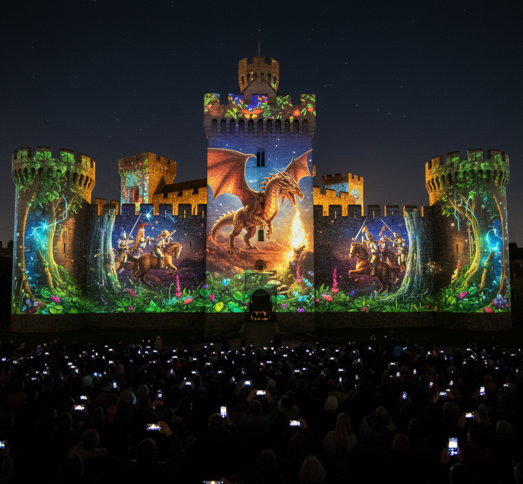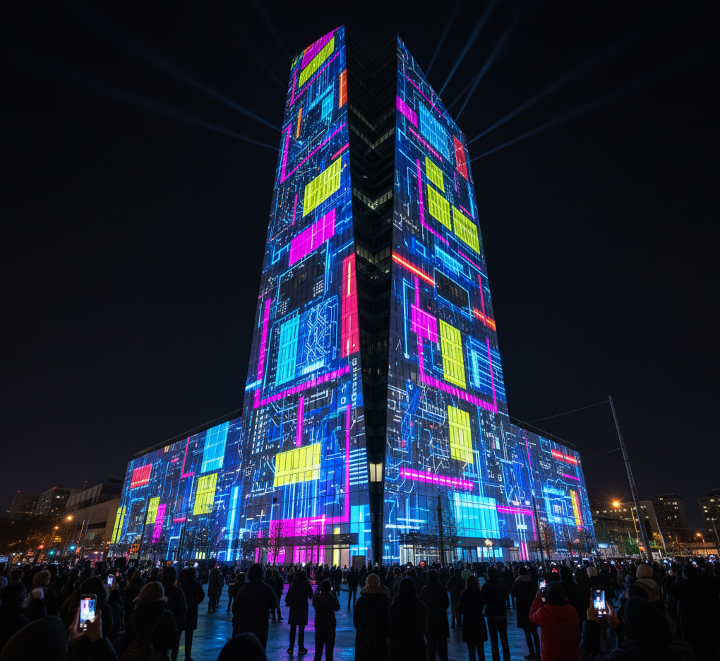 Projection Mapping ist eine leistungsstarke Technik, die es uns ermöglicht, die digitale und die physische Welt nahtlos miteinander zu verschmelzen. Mithilfe spezialisierter 3D-Modellierung und visueller Inhaltserstellung verwandeln wir unregelmäßig geformte Objekte, Gebäude und Bühnen präzise in kolossale, dynamische Projektionsflächen.